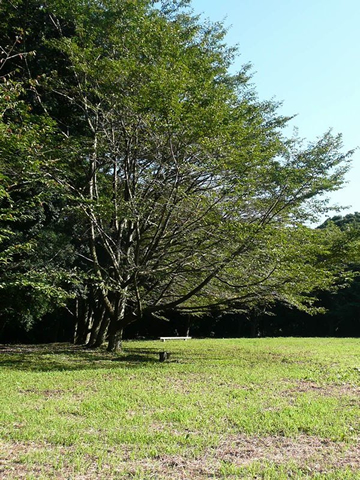城址跡の広場と桜