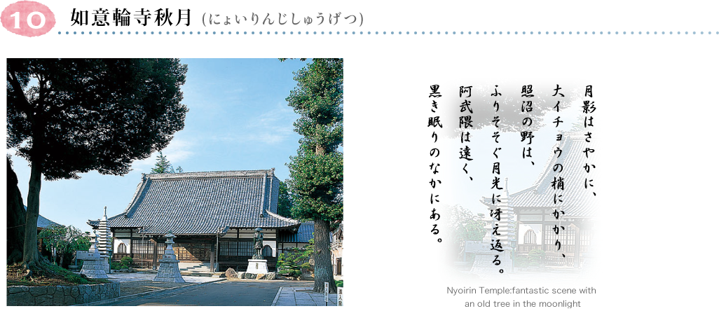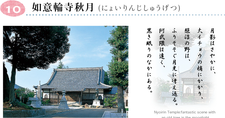 十王とは冥界にあって亡者の罪業を裁く王である。初七日,二・七日,三・七日,四・七日,五・七日,六・七日,七・七日,百カ日,一年忌,三年忌ごとにそれぞれの王が裁く。 奪衣婆は,三途の川のほとりにいて亡者の衣服を脱がせる老女で,如意輪寺では「しょうろくばばあ」と呼んでいる。(享保16年)