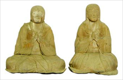 照沼氏の夫婦像で,元は彩色と思われる。ともに胸前で合掌し,男性像は比丘形で安座,女性像は頭巾を被って正座している。(宝永元年)