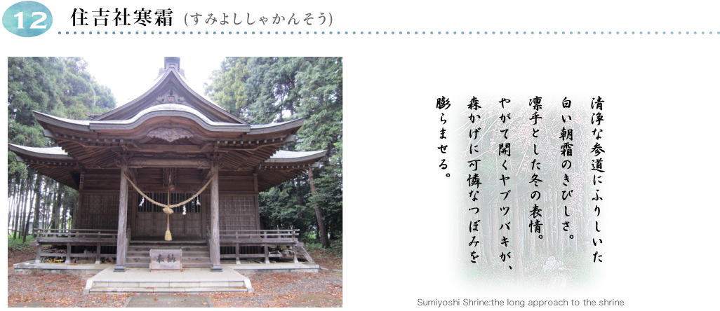 祭神は,表筒男命,中筒男命,底筒男命,息長帯姫命。境内社は上諏訪社,下諏訪社,山神社,十殿神社。 和銅元年(708)左大臣橘諸兄が奥州下向の際に創建したのが始まりとされています。その後足利持氏が三五貫文の土地を寄進,佐竹氏の加護も受けていたといわれています。永正3年(1506)社殿が炎上,水戸光圀により寛文年中(1661~73)に修復されました。