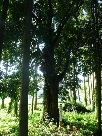 根元から1.7mのところで二分し,幹のさらに上方で結合し,また二分するといった珍しい例である。