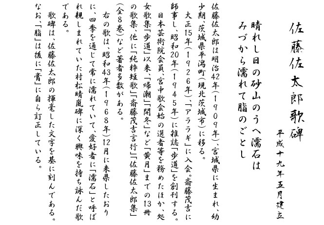 佐藤佐太郎の歌碑(平成19年5月建立)