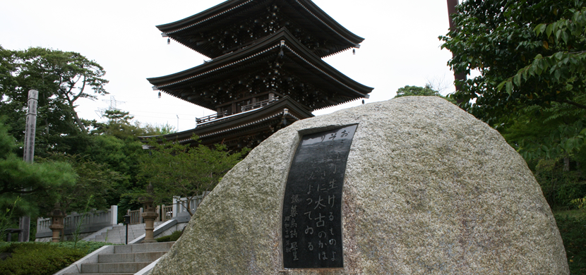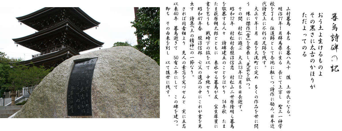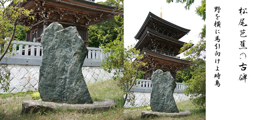 村松山虚空蔵堂の三重之塔と奥之院の間に、松尾芭蕉の古碑があります。